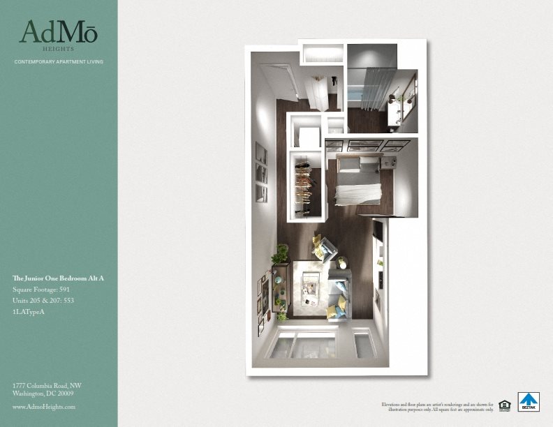 | The Junior One Bedroom Alt A | 1 | 1 | 591 | $2,472 /MO | ||