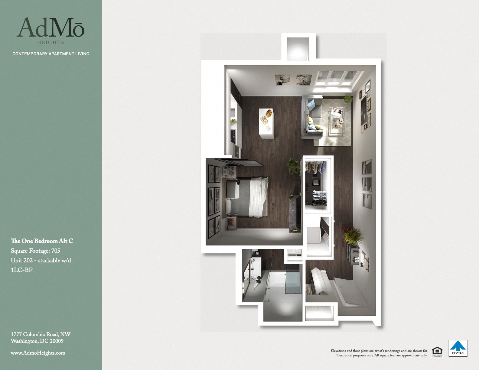 | The One Bedroom Alt C | 1 | 1 | 705 | $2,409 -to $2,444 /MO | ||